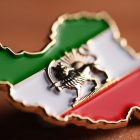 This 3D Gold Plated* Lion and Sun Map without sea Lapel pin is a striking tribute to Persian history and identity. Shaped like Iran’s map, the design features the traditional green, white, and red tricolour with a raised gold Lion and Sun (Shir o Khorshid) emblem at the centre.