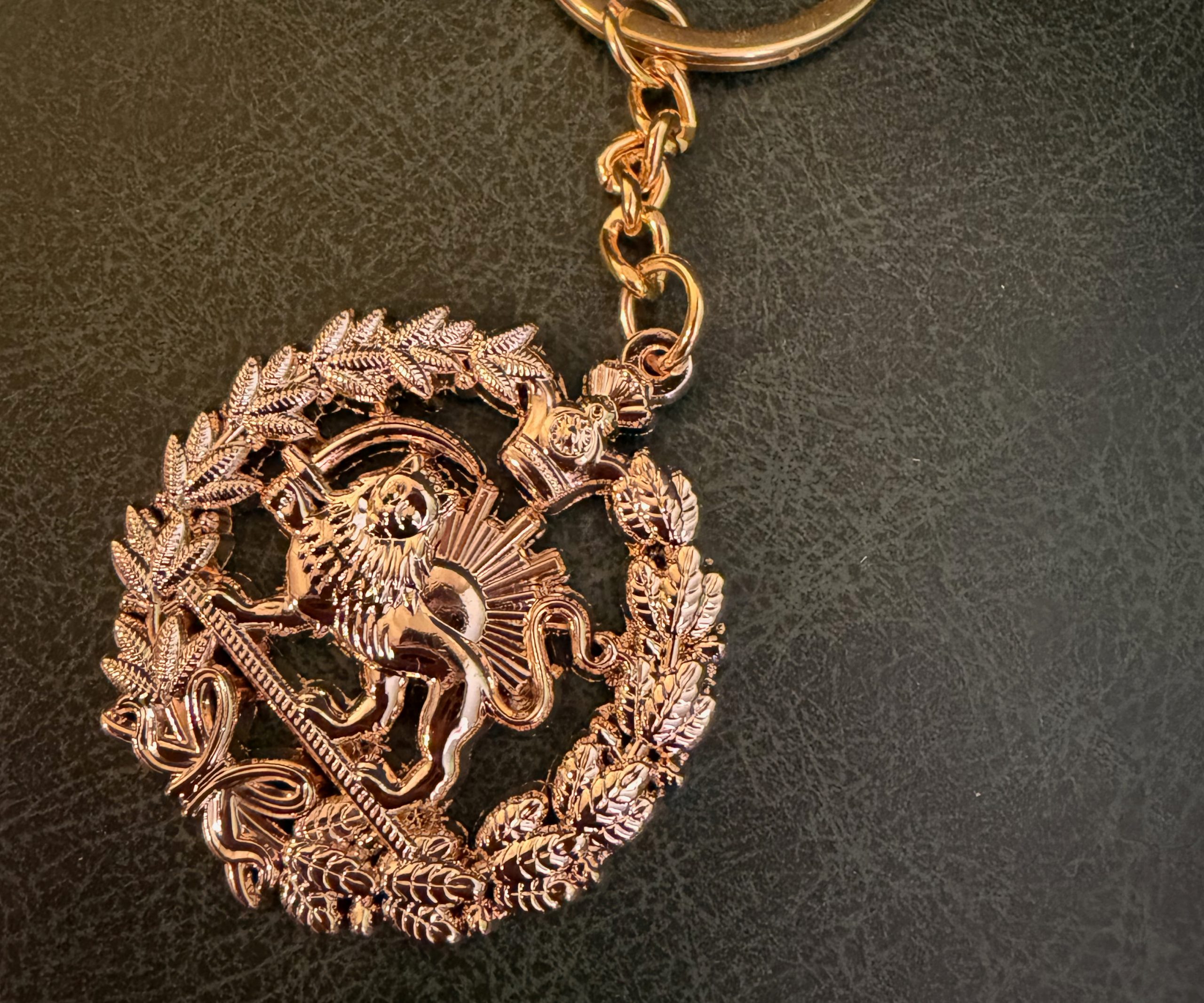 Elevate your everyday essentials with this Lion & Sun gold keyring, featuring a beautifully detailed 4cm emblem and finished in real gold plating.