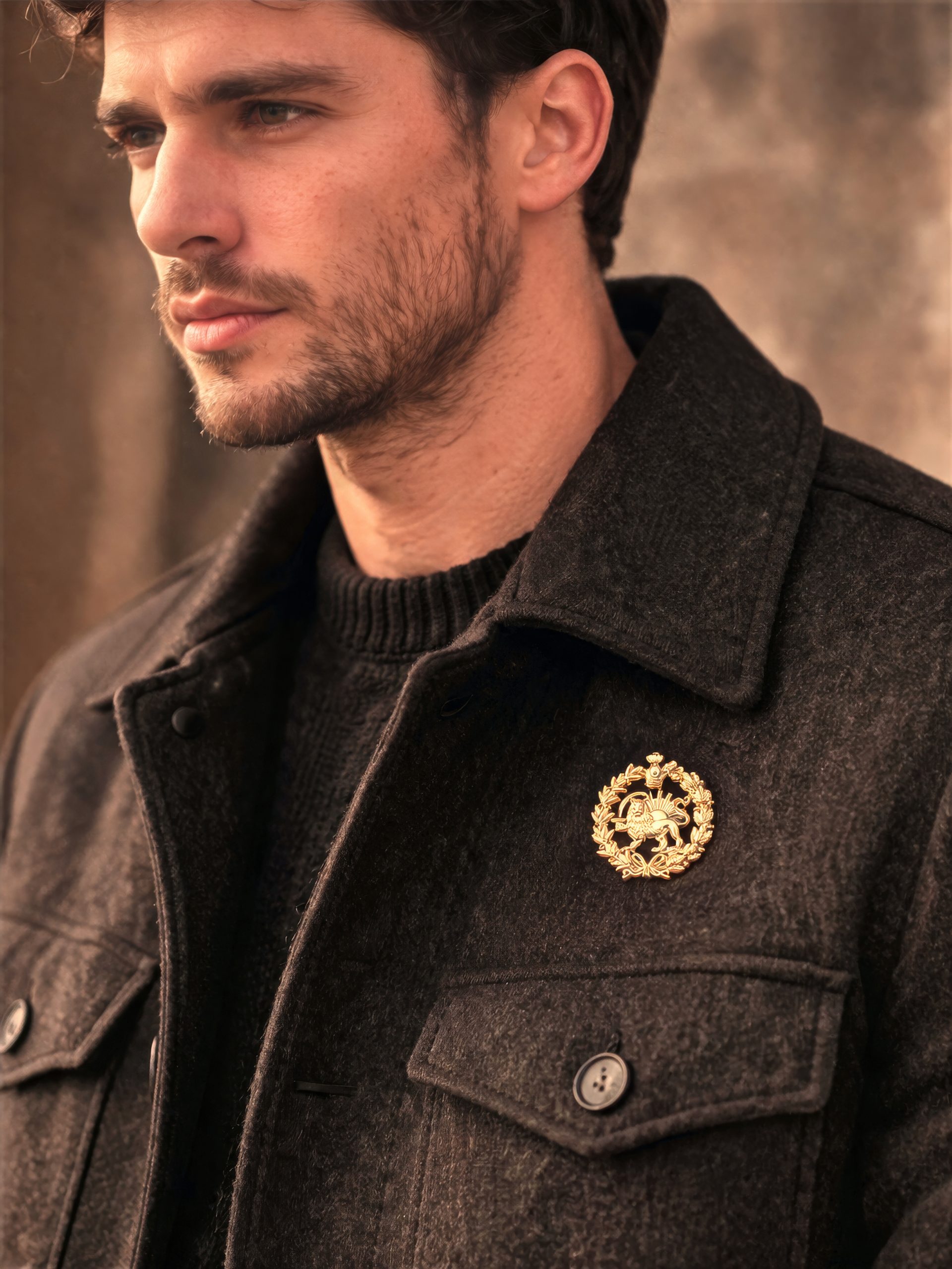 Shir O Khorshid Heritage Lapel Badge – Persian Lion and Sun Golden Pin – Shah Pahlavi Symbol – Raised 3D Pahlavi emblem